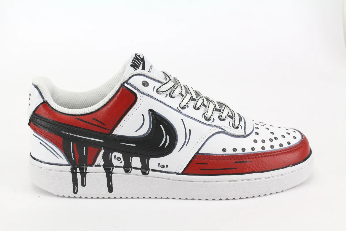 Scarpe originali Nike Court Vision Low personalizzate con graffiti neri e colorati dipinti a mano artigianalmente, in aggiunta colatura Slime laterale . Su ogni scarpa lavorata a mano viene eseguito un processo minuzioso che la rende un’opera unica, originale e resistente. Eventuali imperfezioni, pertanto, sono da considerarsi un valore aggiunto del lavoro artigianale. La qualità […]