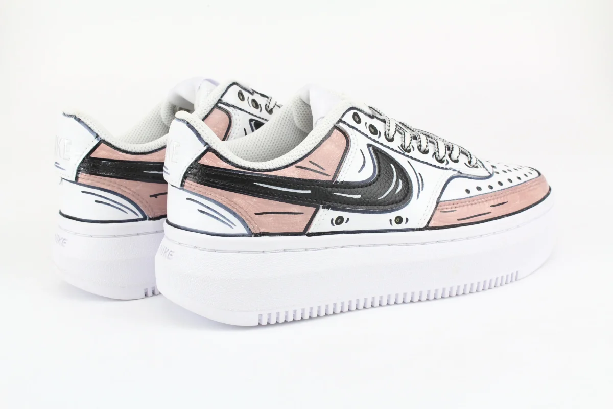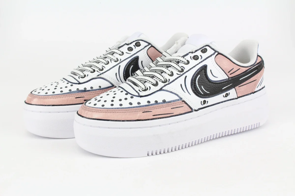 Sneakers originali Nike Court Vision Low Platform personalizzate con graffiti neri e colorati dipinti a mano artigianalmente. Su ogni scarpa lavorata a mano viene eseguito un processo minuzioso che la rende un’opera unica, originale e resistente. Eventuali imperfezioni, pertanto, sono da considerarsi un valore aggiunto del lavoro artigianale. La qualità dei colori utilizzati uniti a […]