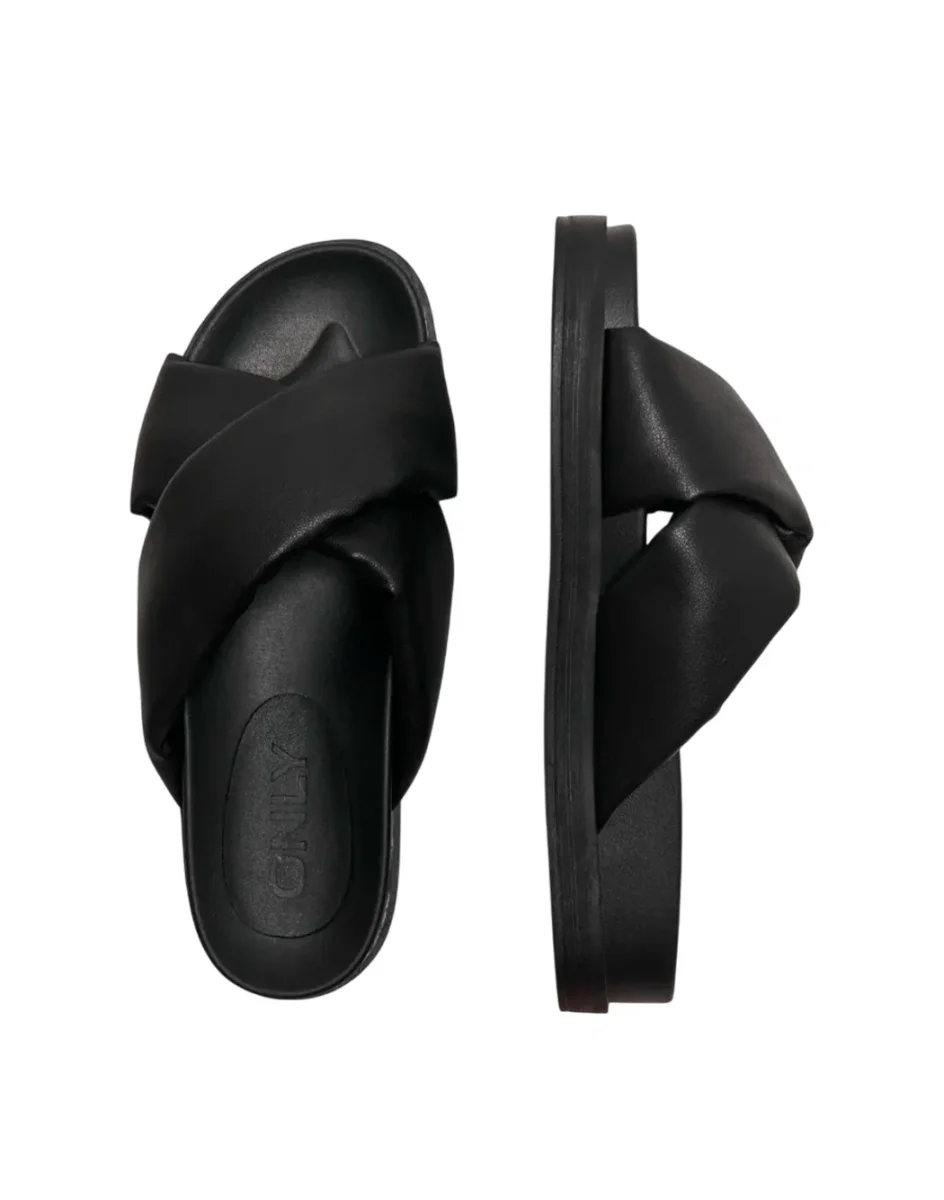 Sandali con calzata slip-on e incrocio frontale. La suola esterna in durevole TPR offre resistenza e stabilità, rendendoli ideali per ogni passo, senza rinunciare allo stile e al comfort.