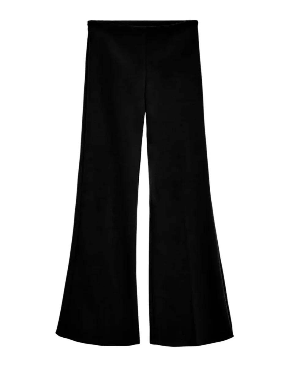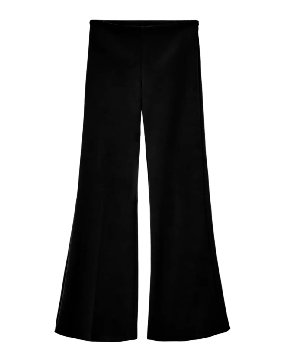 Pantalone donna VMZAMIRA “32 di Vero Moda dal design essenziale ed elegante, realizzato in tinta unita nera. Il modello presenta una vita medio-alta con costruzione pulita che valorizza la silhouette, mentre la gamba flared ampia e fluida crea un effetto slanciato e moderno.