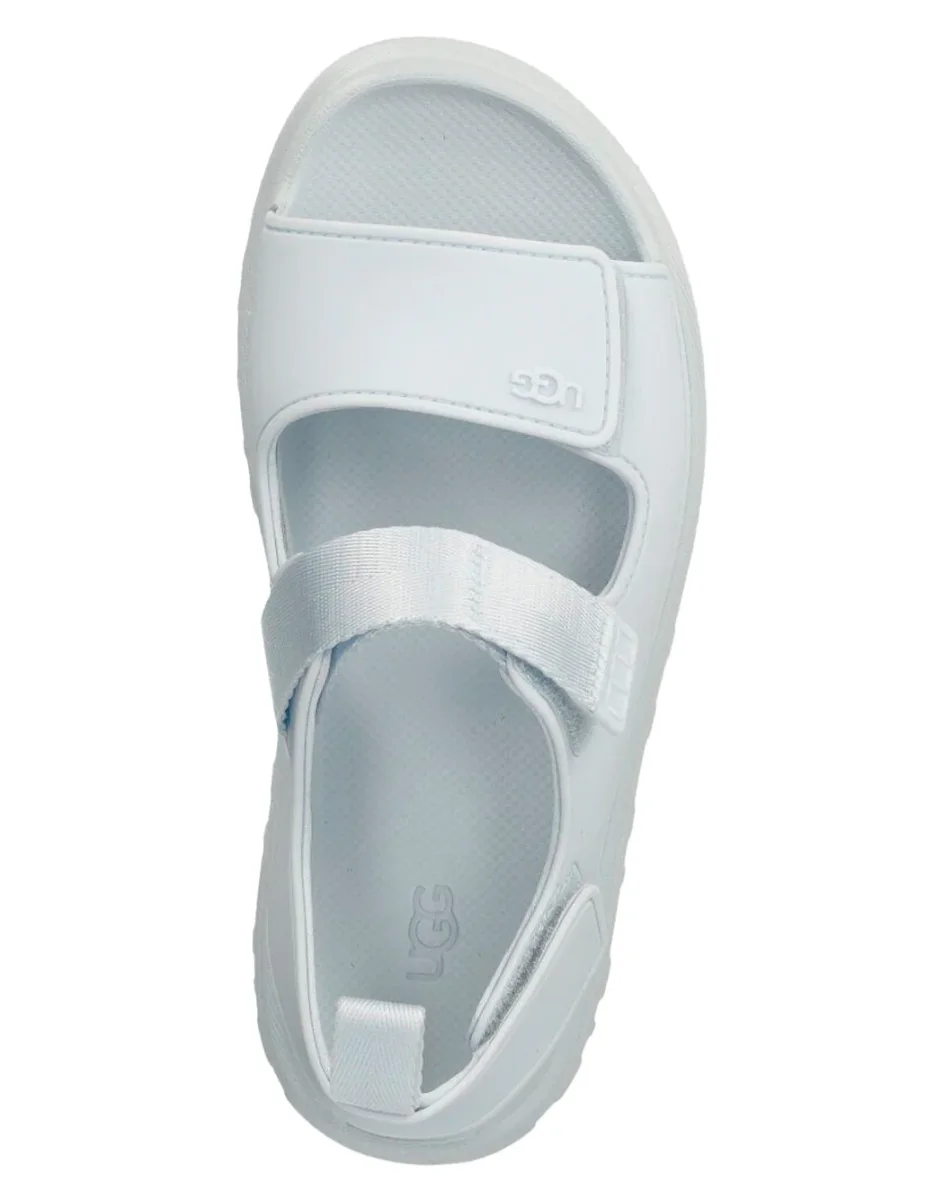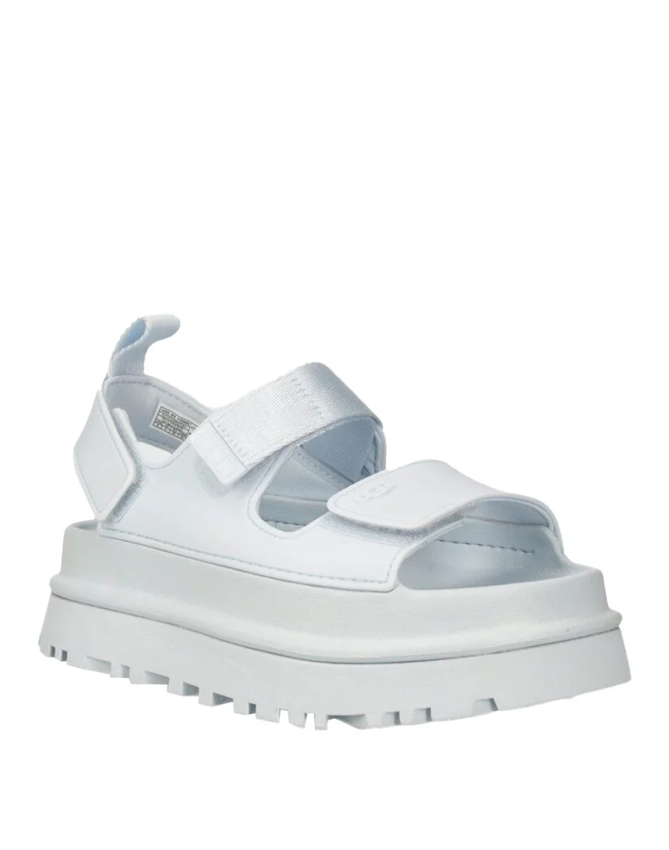 I sandali GoldenGlow di UGG sono un’elegante e sostenibile scelta per le giornate estive. Caratterizzati da un tirante posteriore realizzato con fibre di poliestere, offrono una vestibilità regolabile e comoda grazie alla chiusura in velcro. La fascia del gambino è realizzata in tessuto con fibre di poliestere riciclato, dimostrando l’impegno di UGG per la sostenibilità ambientale. La fodera della tomaia è anch’essa realizzata con fibre di poliestere, garantendo traspirabilità e comfort.