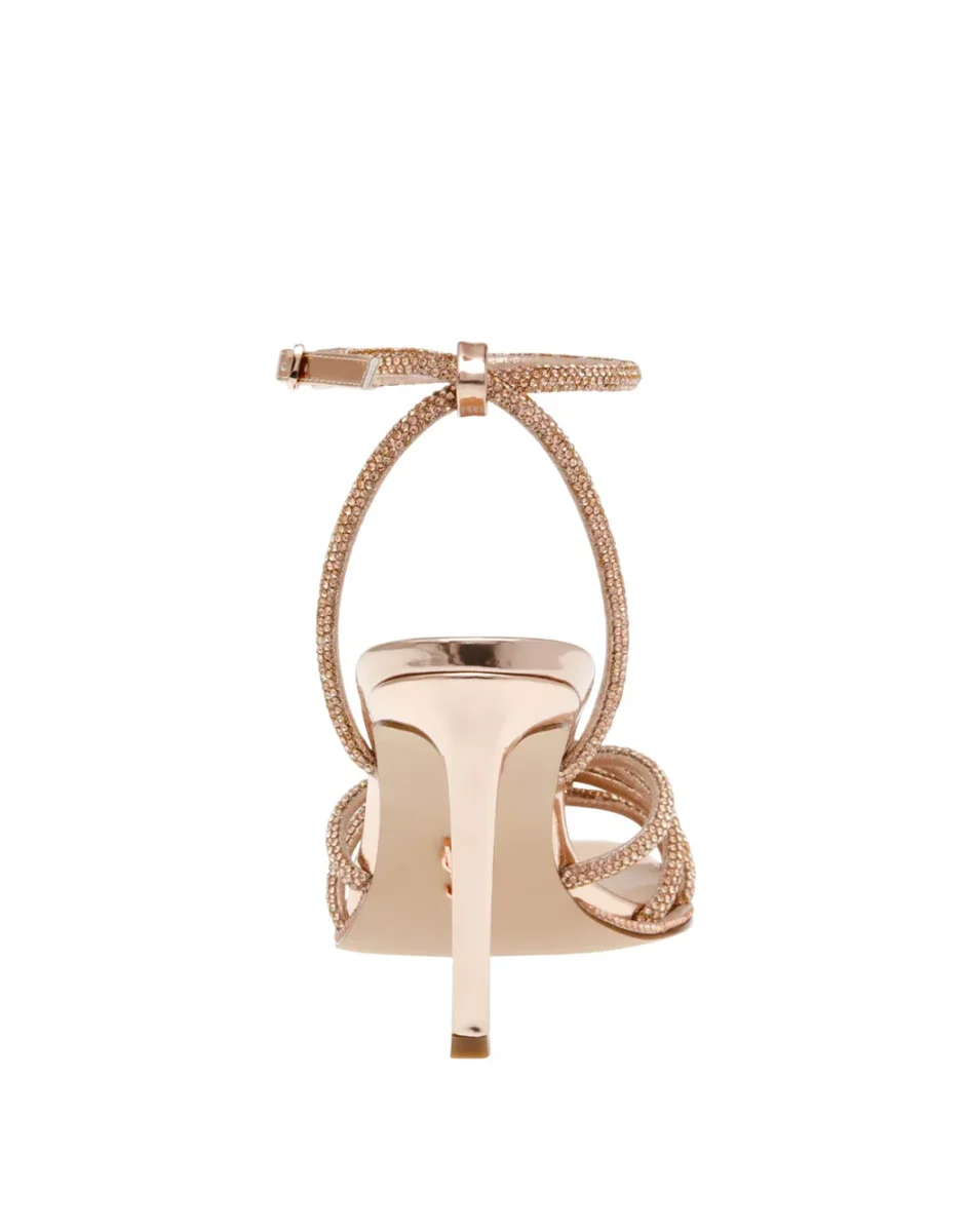 Eleganza scintillante e silhouette femminile. Il sandalo KAILYN-R firmato Steve Madden conquista con il suo design raffinato: fasce sottili impreziosite da strass abbracciano il piede, mentre il tacco a spillo da 8 cm slancia con grazia. Perfetto per cerimonie, party e serate speciali, aggiunge un tocco glamour a ogni outfit.