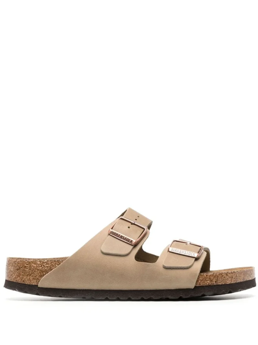 Sandalo BIRKENSTOCK in pelle Nabuk oleata con plantare anatomico in sughero e lattice, suola in eva. Chiusura con doppia fibbia laterale in metallo regolabile.