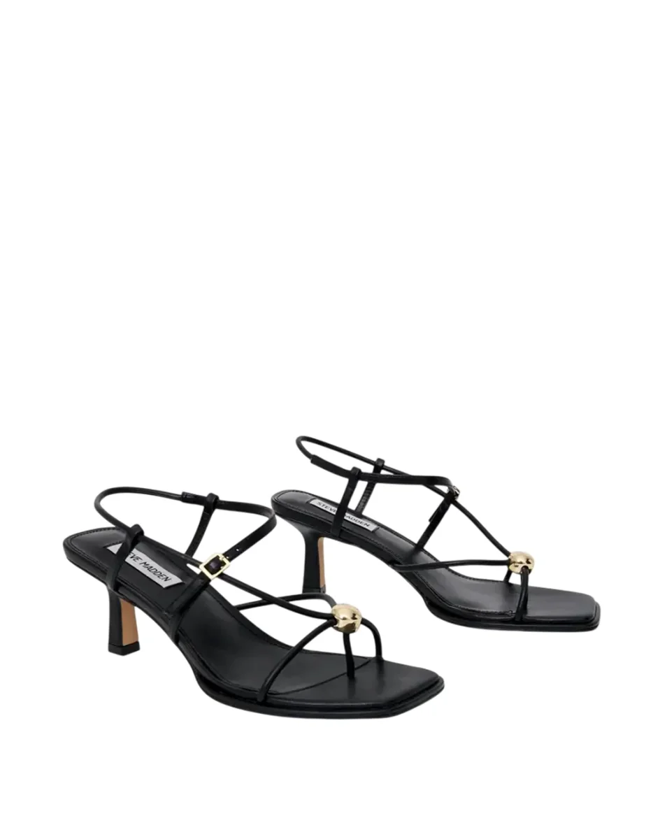 I sandali Jackpots R di Steve Madden neri combinano un design luminoso e sofisticato, creando un look elegante e di forte impatto. La silhouette essenziale e i dettagli color oro donano un tocco di glamour ai tuoi outfit estivi.