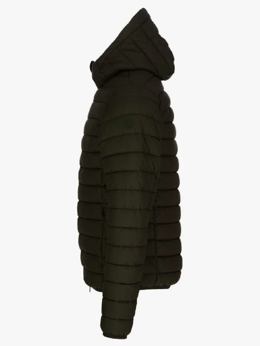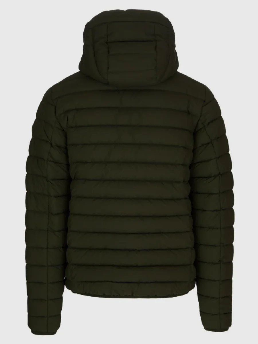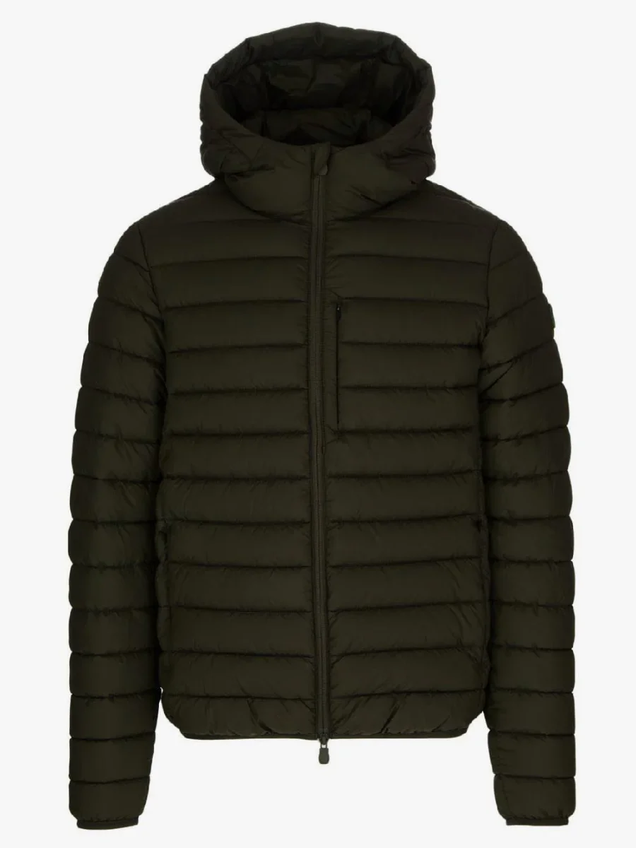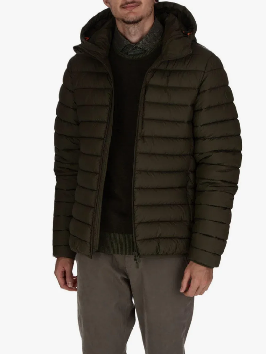 Piumino da uomo Save The Duck verde militare, 100% animal-free con imbottitura in Plumtech, traspirante e repellente all’acqua. Capo trapuntato con cappuccio. Chiusura a doppio cursore, tasche laterali con zip e taschino con zip sul petto. Semplice e confortevole !