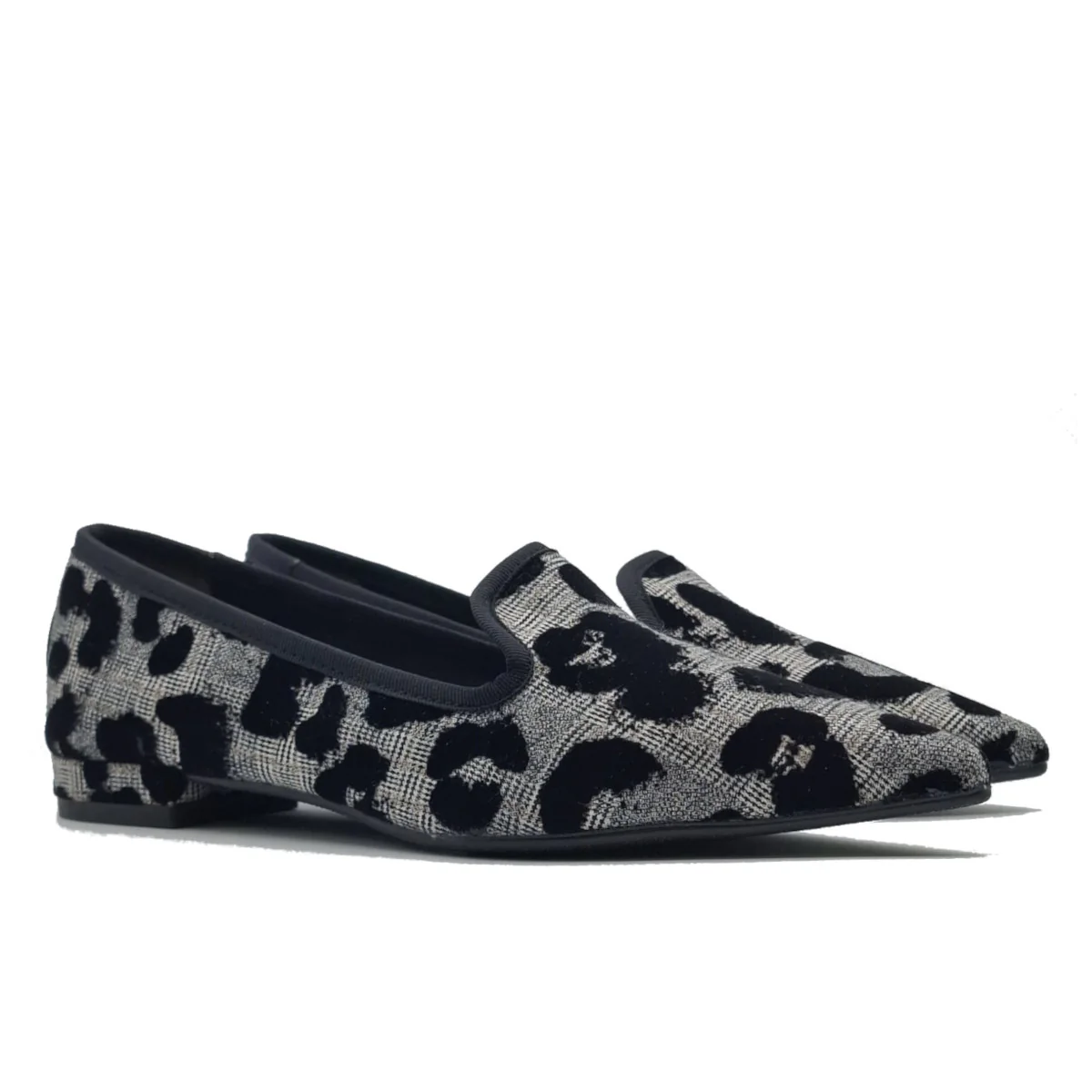 Slipperina in velluto a punta.Bordino i grogren.Tacco 2 cm.