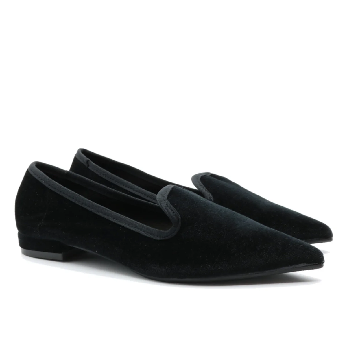 Slipperina in velluto lucido a punta.Bordino in grogren.Tacco 2cm.