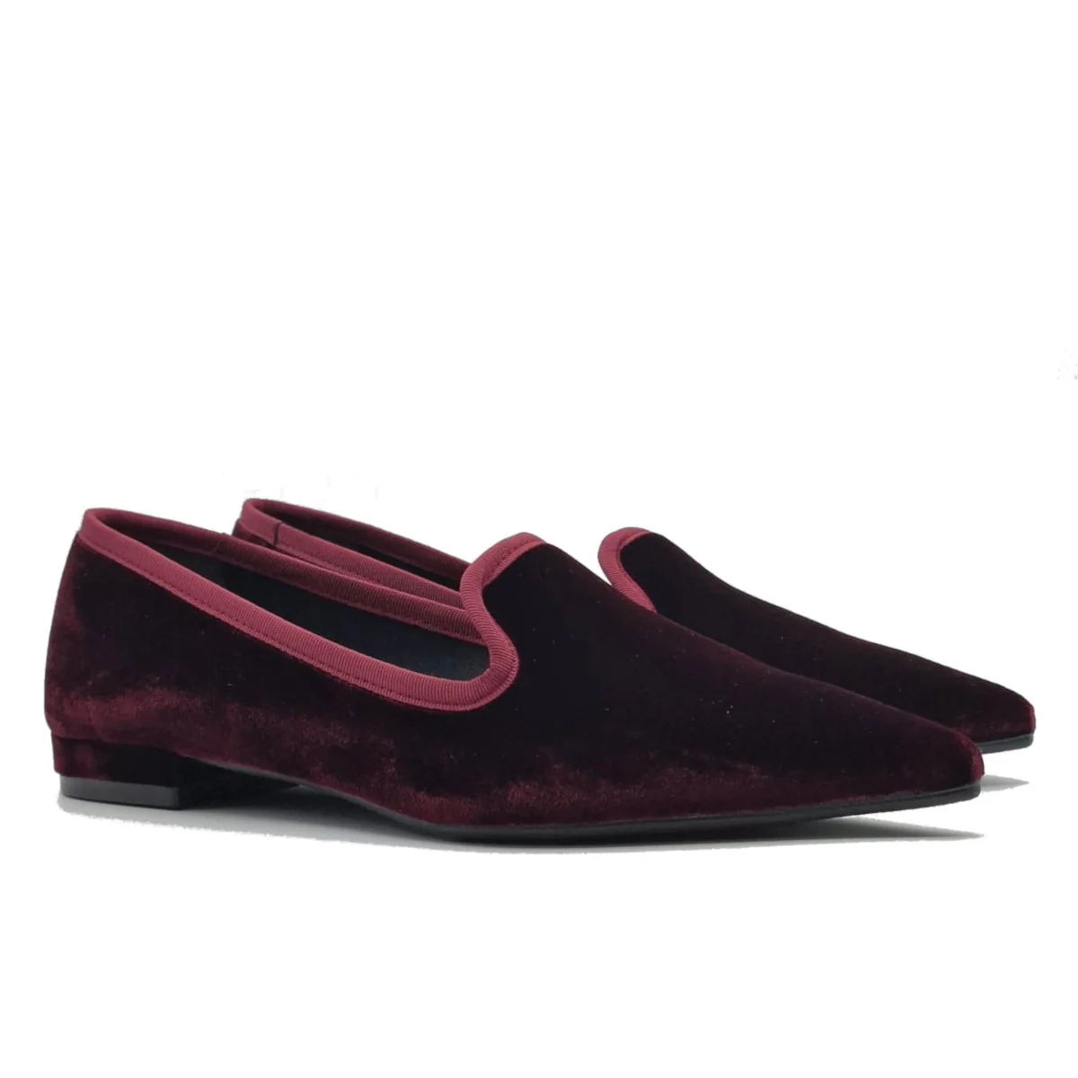 Slipperina in velluto a punta.Bordino in grogren.Tacco 2cm.