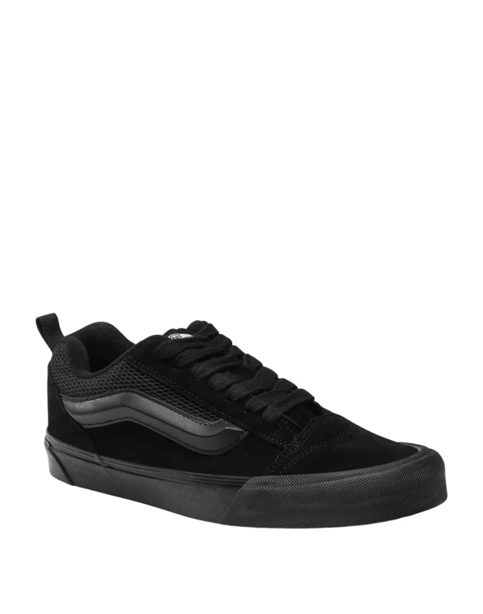 La linguetta e il collo super imbottiti garantiscono un look voluminoso, richiamando l’estetica delle originali Old Skool. Ispirate all’iconica filosofia “Off The Wall” di Vans, le Knu Skool presentano la distintiva Sidestripe™ sagomata in 3D, aggiungendo un ulteriore tocco di stile al design già audace. La linguetta sul tallone consente di indossare e sfilare facilmente la scarpa, rendendola pratica oltre che trendy.