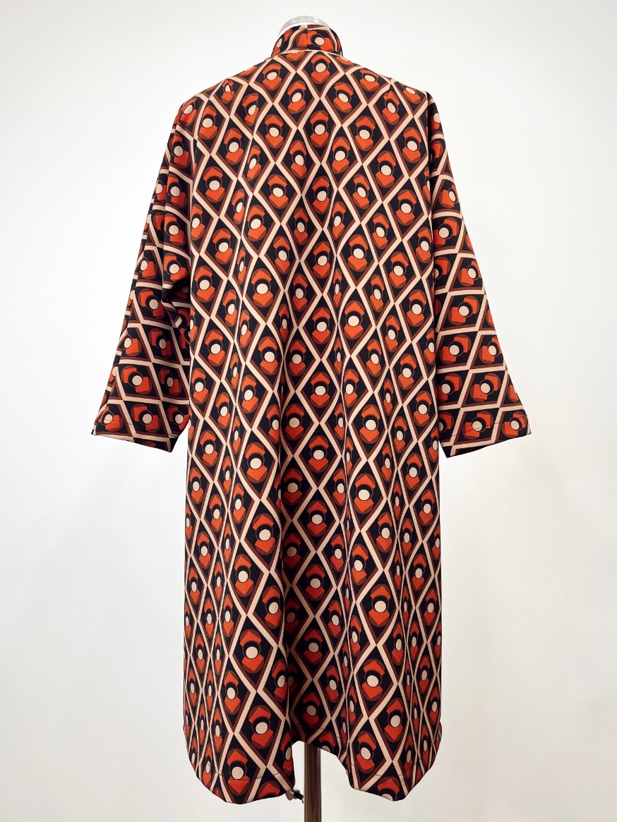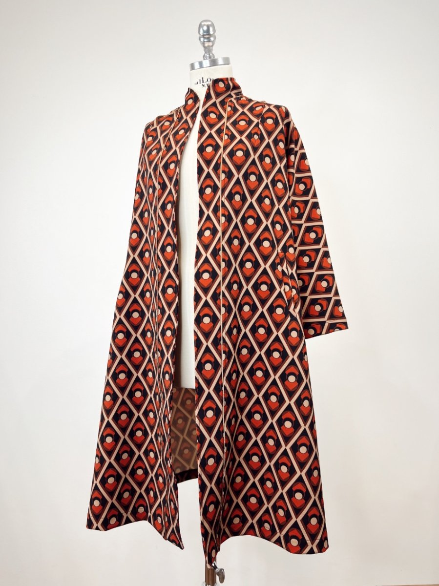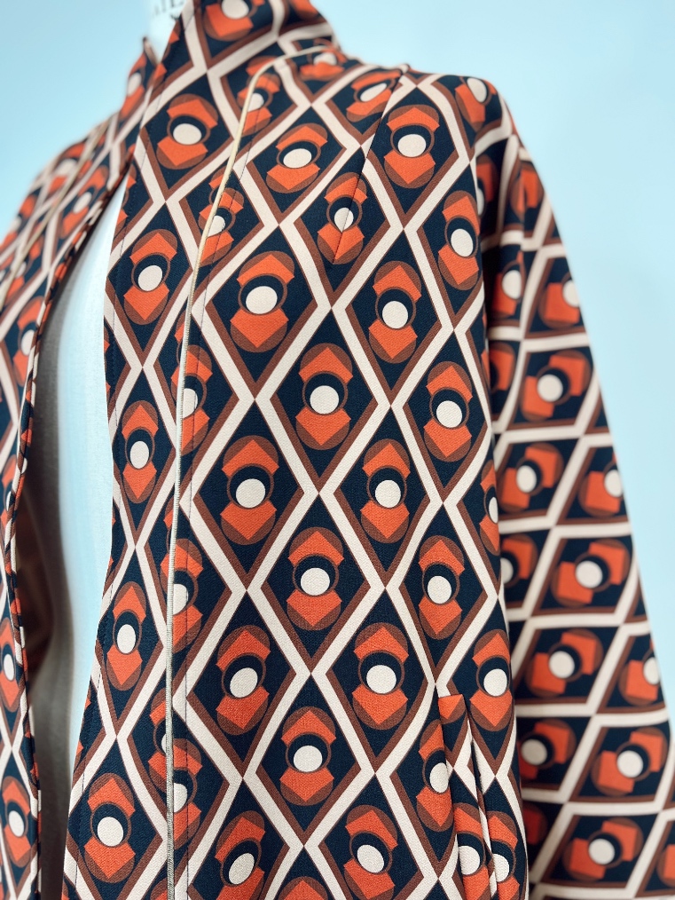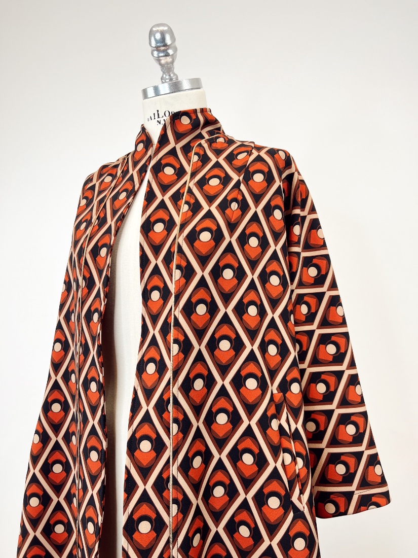 Spolverino linea a trapezio in cady di viscosa . Non ha allacciature e presenta due tasche a filetto laterali . É interamente lavorato a mano dal nostro laboratorio sartoria. È taglia unica e veste fino ad un 48.