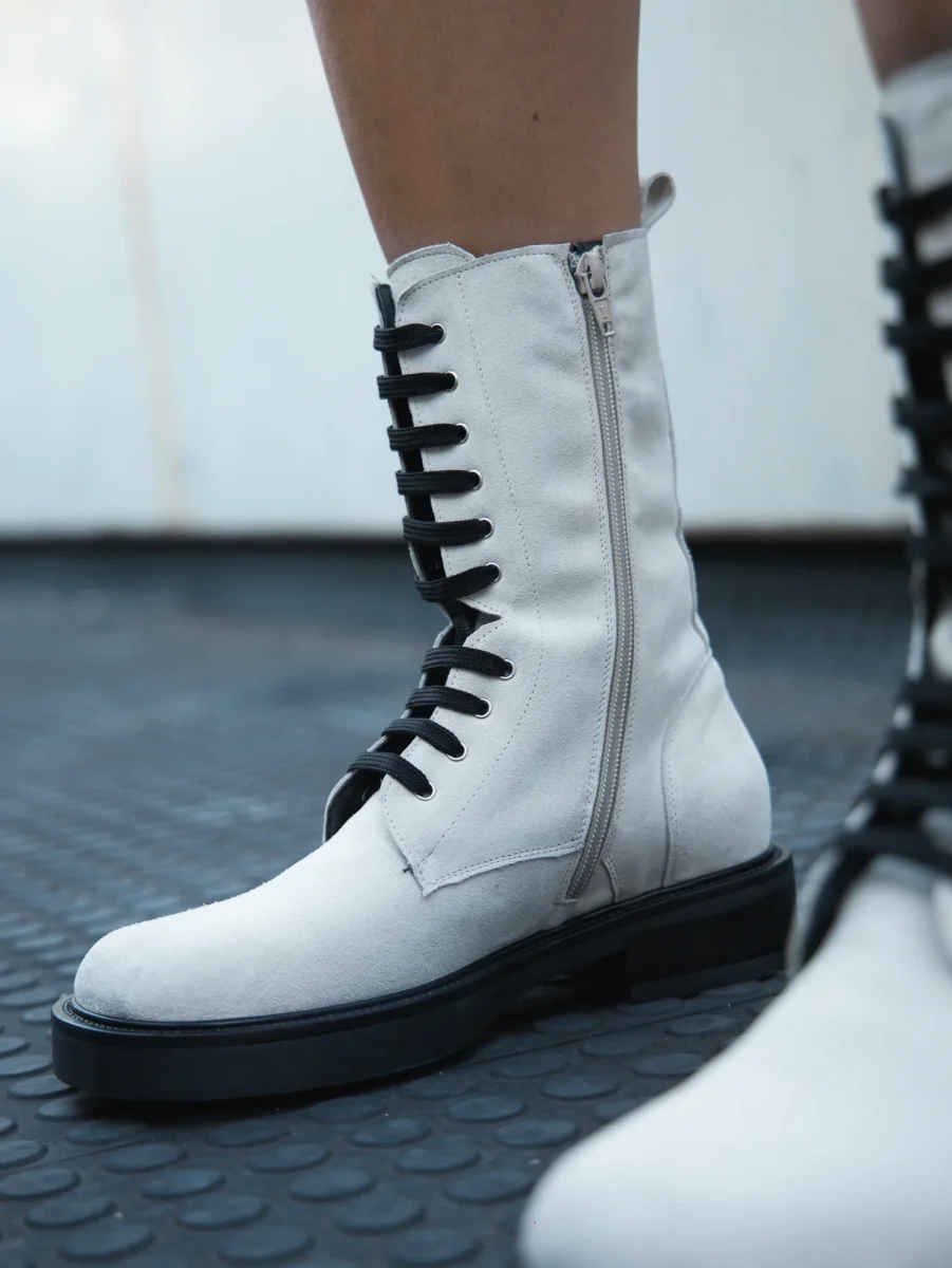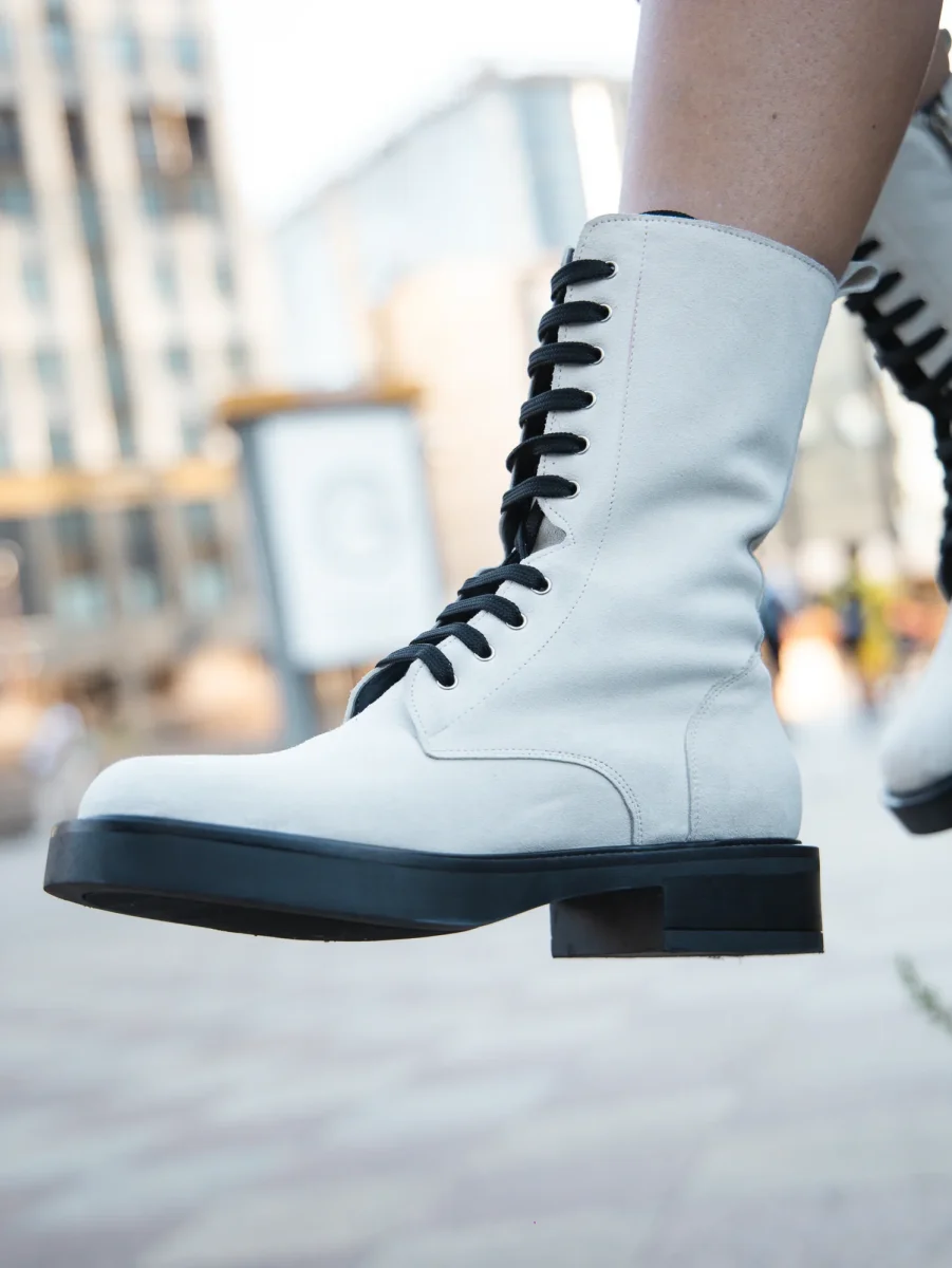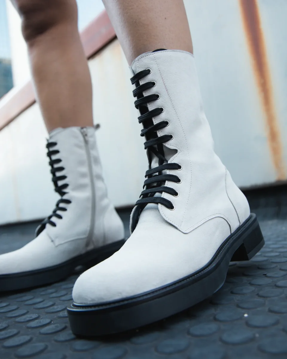 Il nostro anfibio allacciato Steel in pelle di vitello bianca è realizzato artigianalmente in Italia con vera pelle. Creiamo questo modello su ordinazione, dedicando massima cura ai dettagli. Grazie all’alta qualità dei materiali, il suo design resta invariato nel tempo, offrendoti uno stile duraturo.