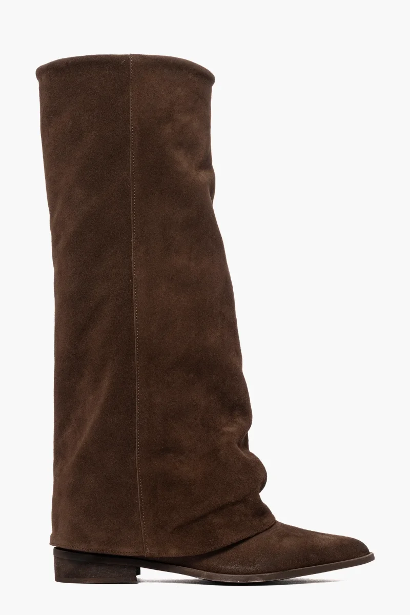 Stivale camoscio marrone con rialzo e risvolto Cannes