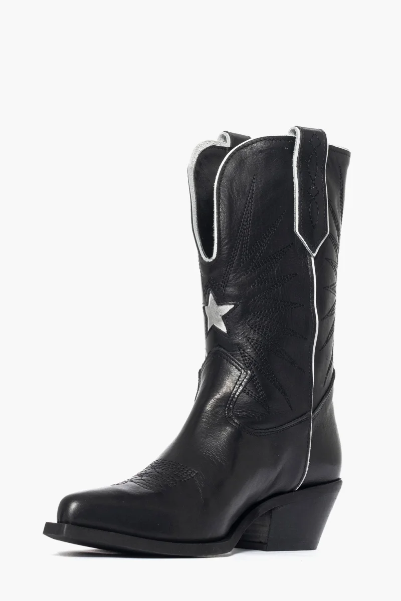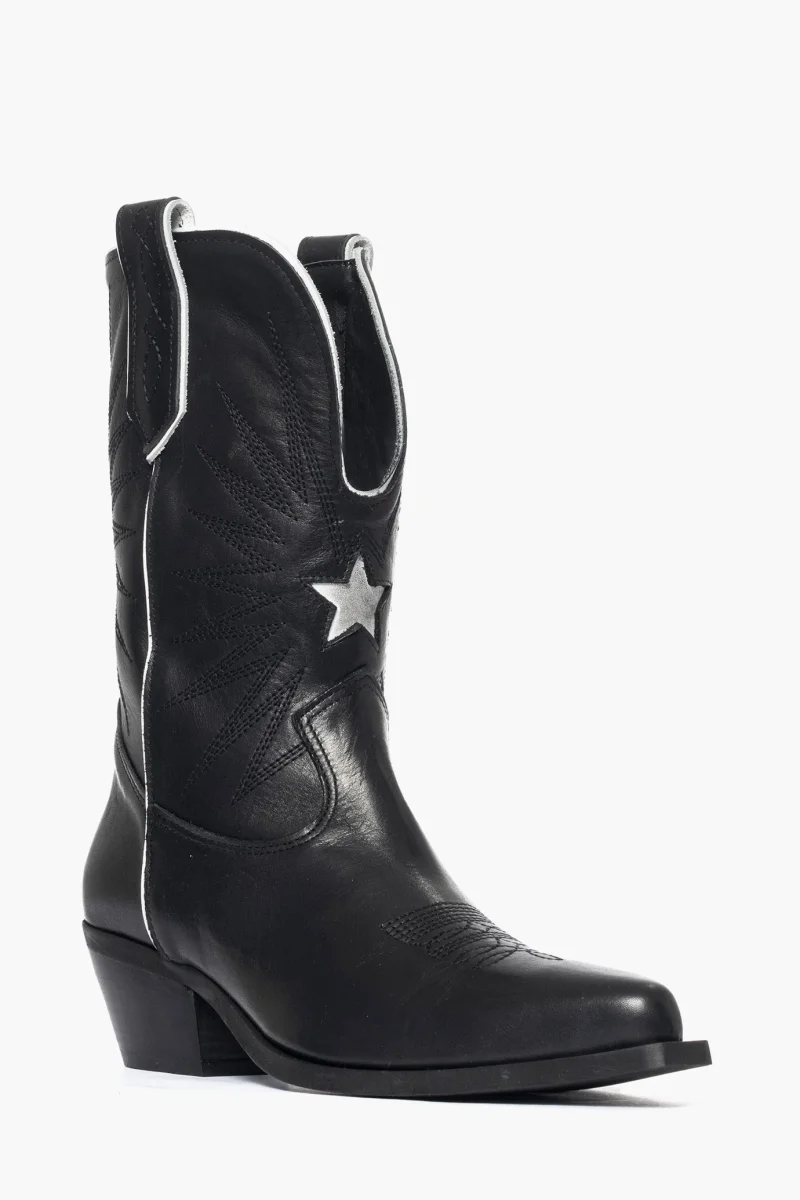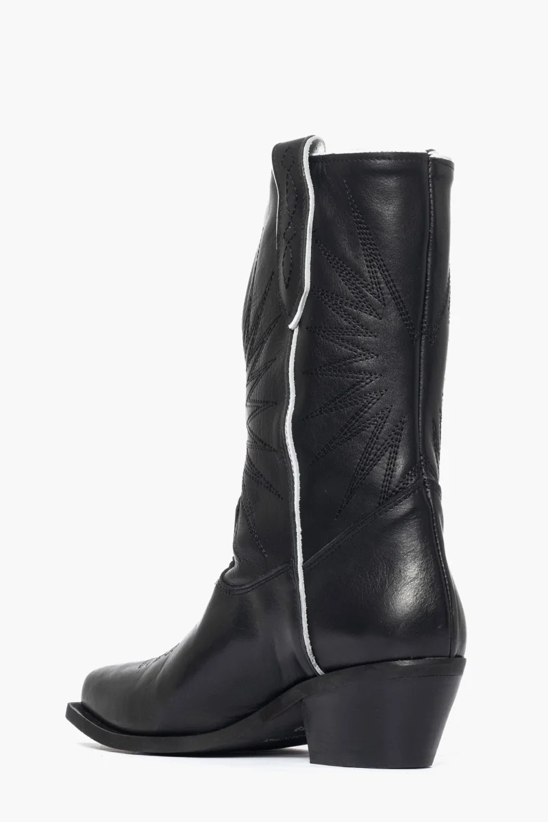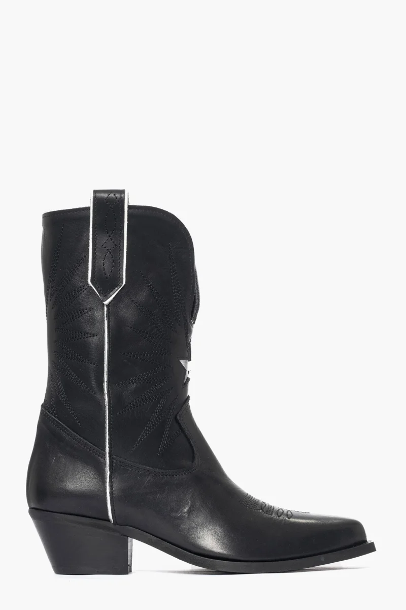 Stivaletto pelle nero e riporto bianco con ricamo Oldwest 92