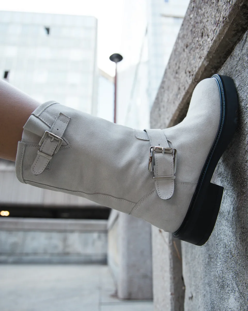 Stone – Stivale in pelle con fibbia bianco