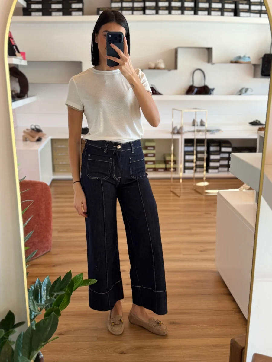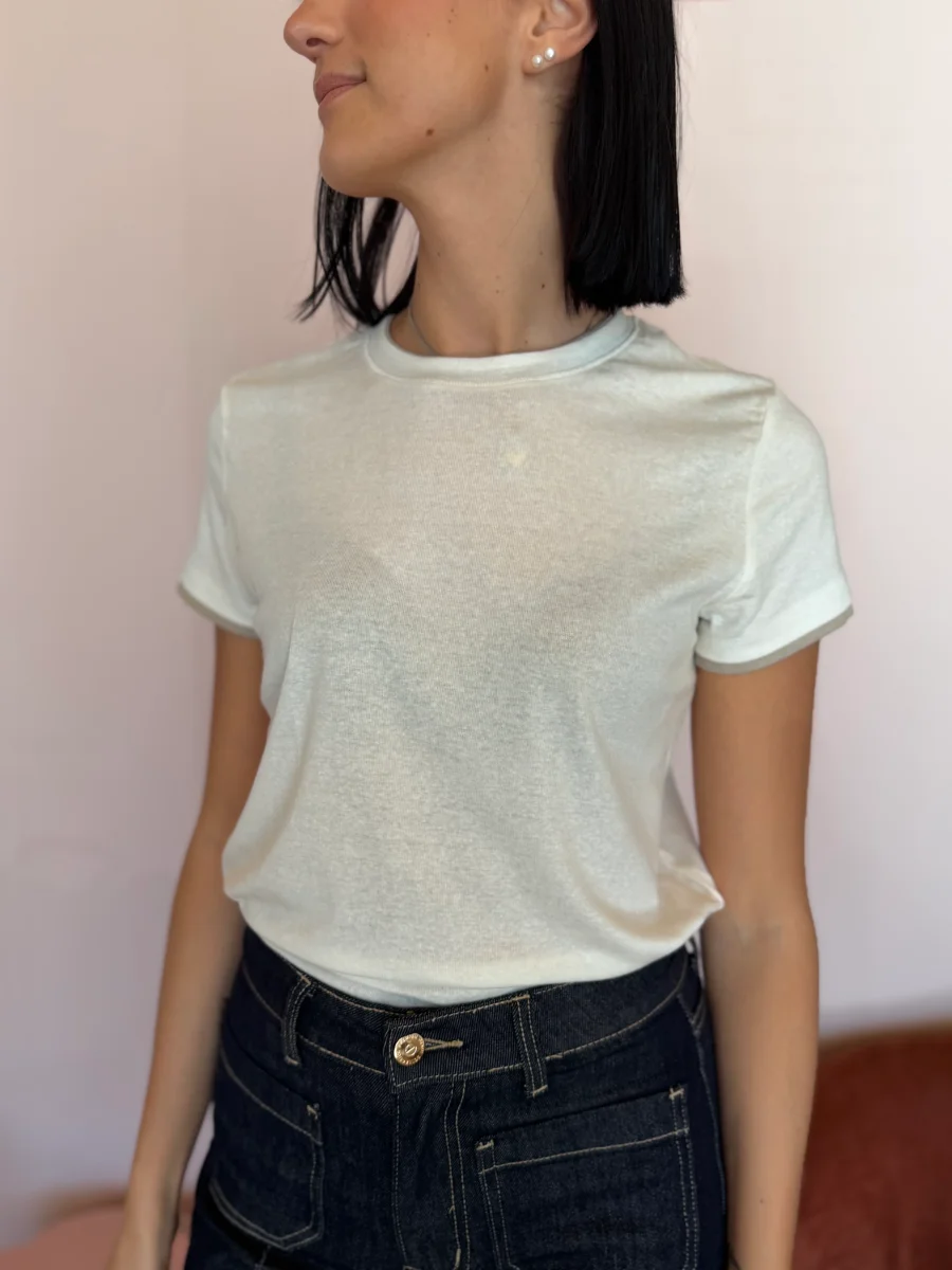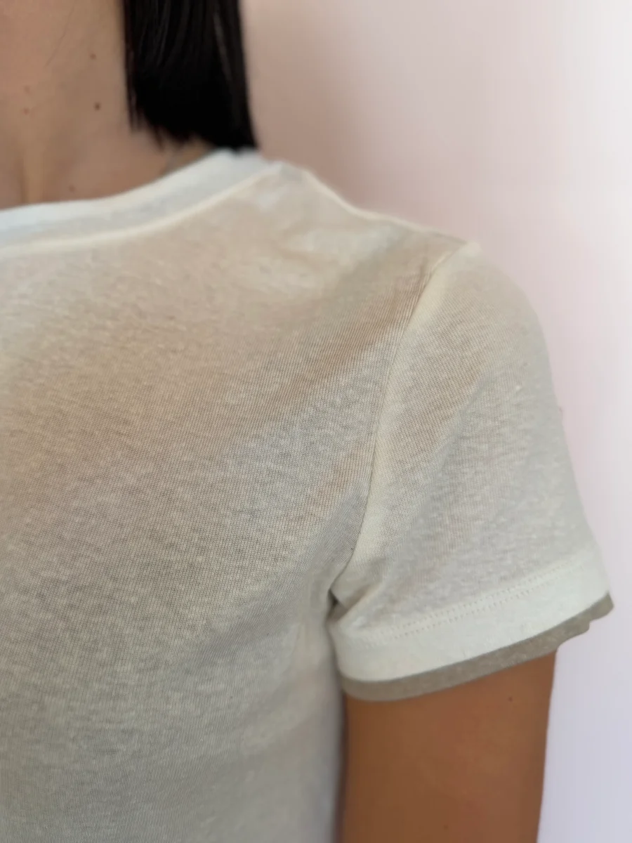 T shirt leggera con dettaglio doppio collo e doppia manica 69% Lyocell 24% Lino 7% Elastan