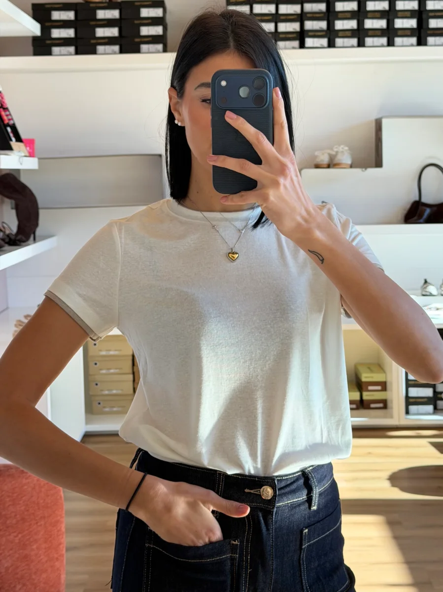 T shirt leggera con dettaglio doppio collo e doppia manica