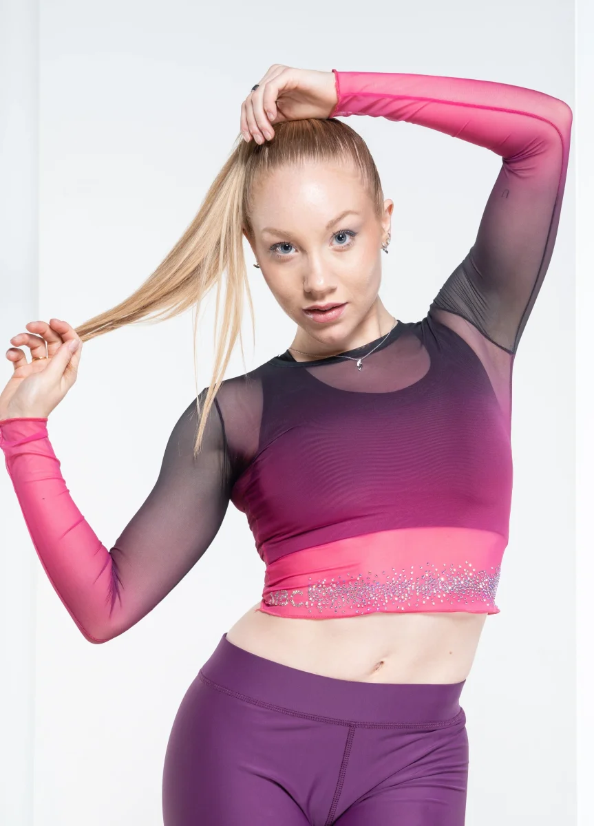 T-shirt manica lunga in tessuto mesh (Tulle) sfumato, trasparente, bielastico antibatterico. Leggerissimo e confortevole segue perfettamente i movimenti del corpo rendendo il capo performante e garantendo unโottima vestibilitร . Studiato per ottenere la massima comoditร durante gli allenamenti la t-shirt รจ completata da decorazione e logo MBC in strass. Nelle foto, la t-shirt mesh รจ indossata […]