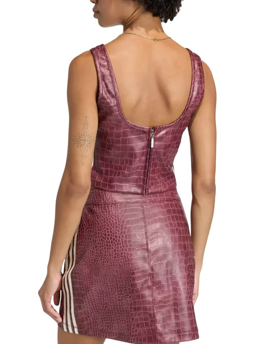 Il top Pleather di Adidas, da donna, è realizzato con finitura liscia e materiale di ottima qualità. Caratterizzato dal taglio slim fit che valorizza la silhouette, con le iconiche 3 strisce bianche sui lati per un tocco casual.