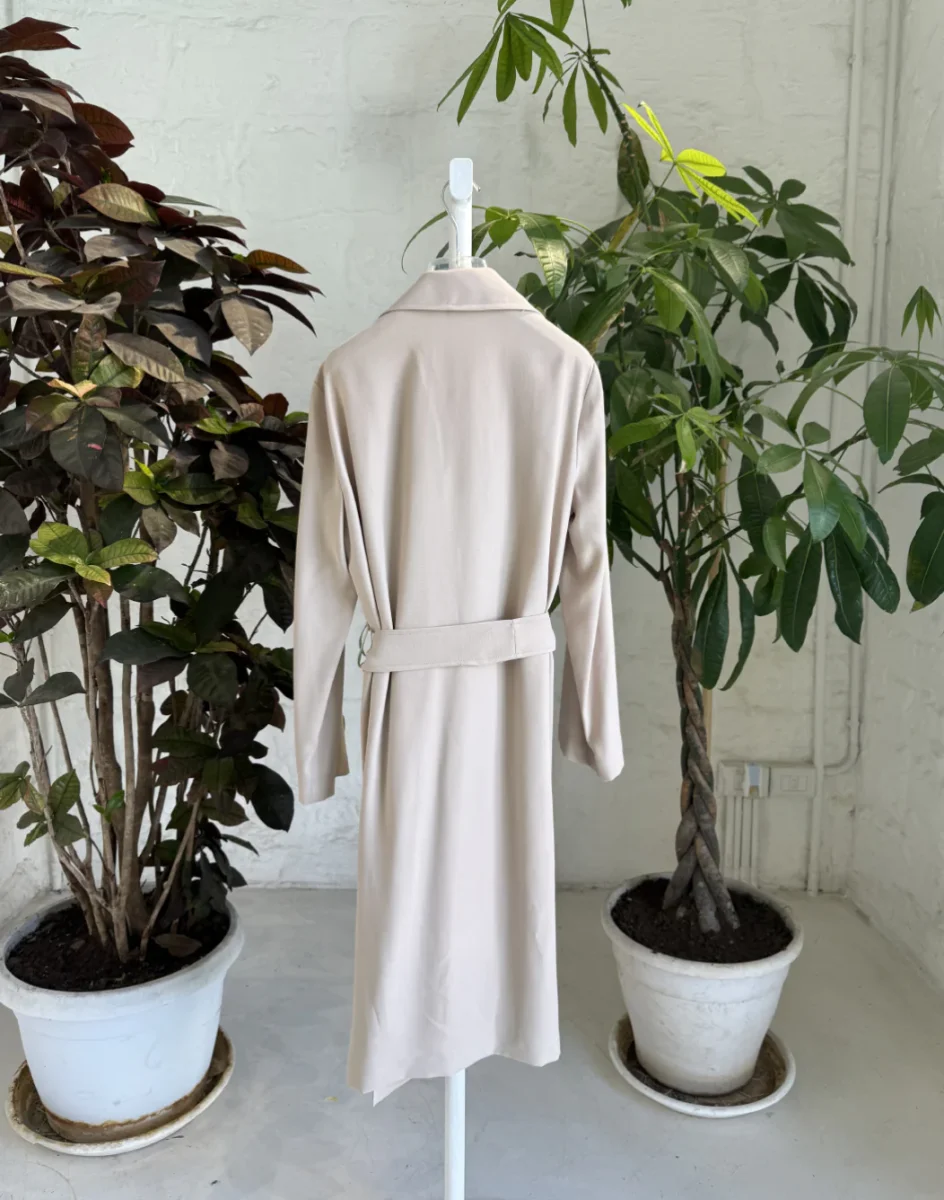 Un trench che diventa il tuo alleato fidato per le giornate in città. Linee morbide e avvolgenti con una cintura alla vita che ti permette di esprimere la tua personalità. Perfetto per chi ama combinare comfort e stile in un unico capo. Lascia che questo trench racconti la tua storia mentre attraversi le strade metropolitane.