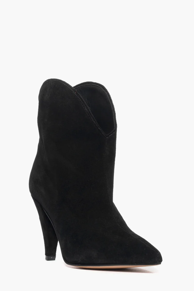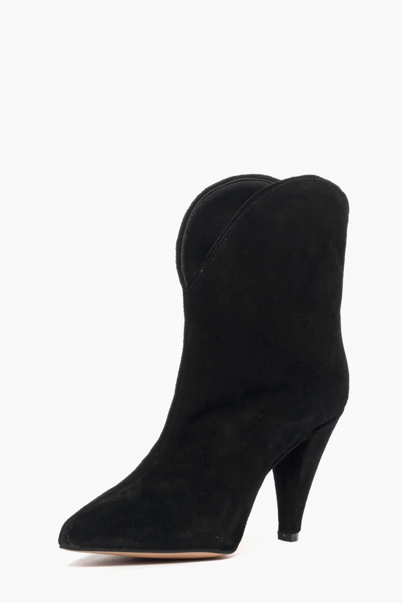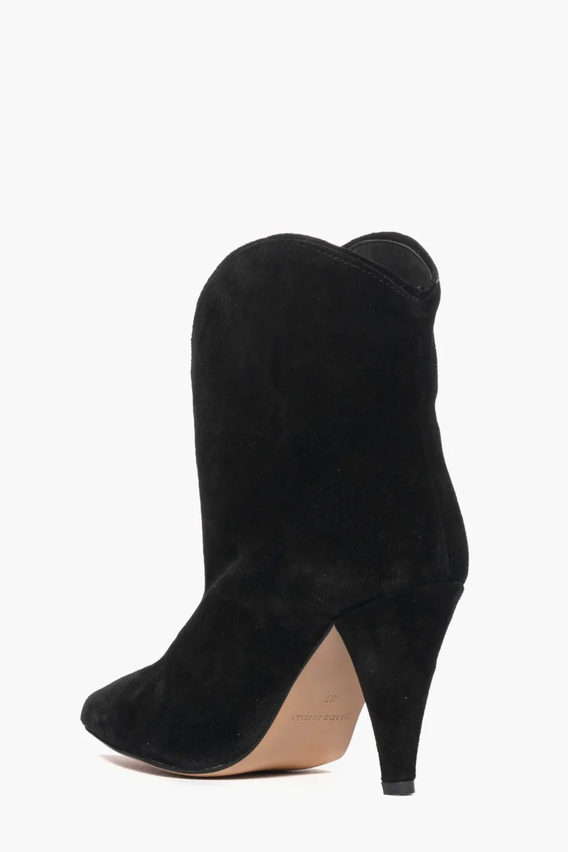 Tronchetti in camoscio nero, interni e sottopiede in similpelle, privo di cerniera, tacco rivestito in camoscio nero, tacco 9 cm. Calzature realizzate in modo artigianale, rigorosamente Made in Italy.
