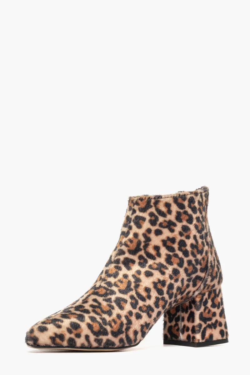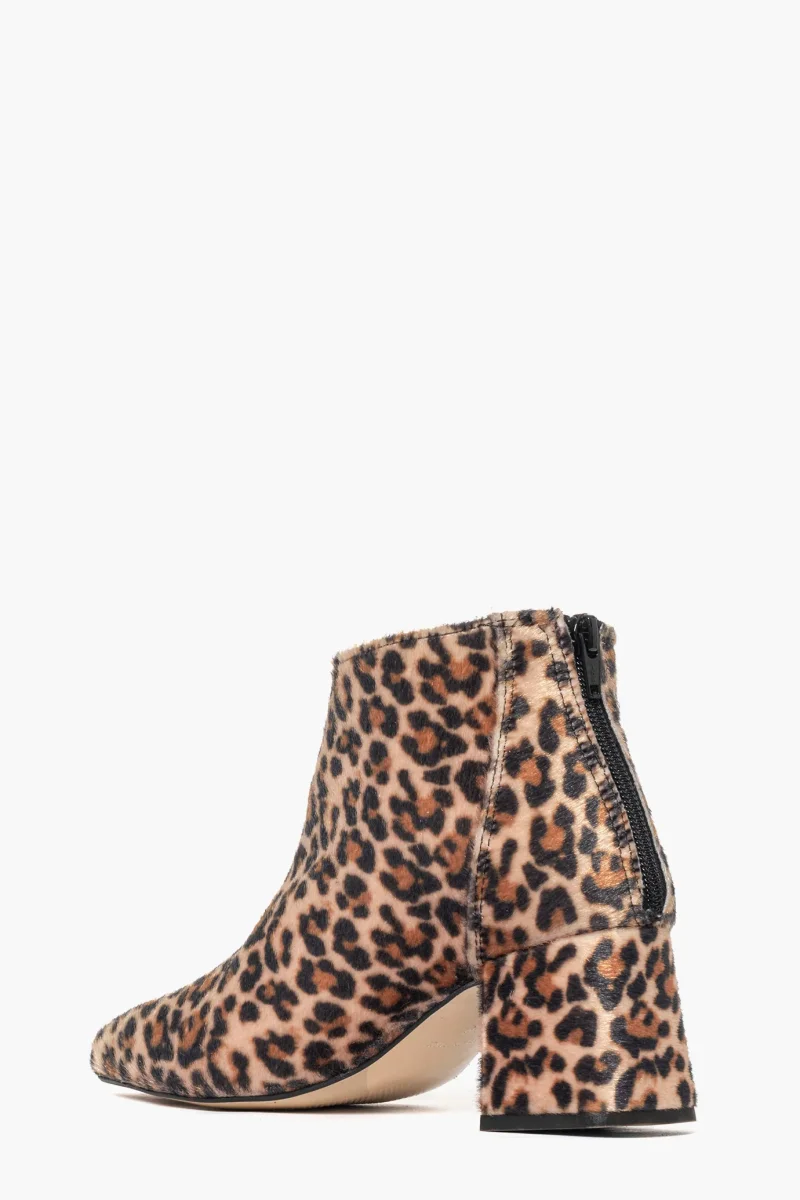 Tronchetti in cavallino sintetico animalier, tacco 6 cm rivestito, cerniera nella parte posteriore, spazzolato, interni e sottopiede in similpelle. Calzano giusti, taglia italiana, punta stretta. Calzature realizzate in modo artigianale, rigorosamente Made in Italy.
