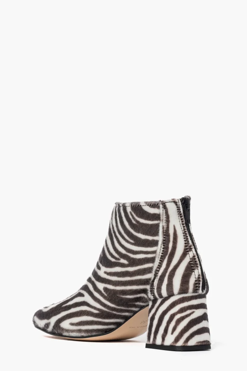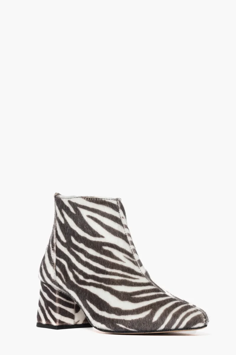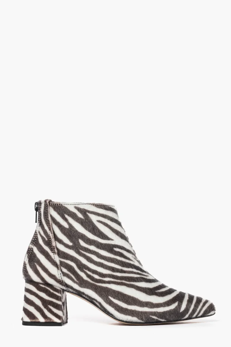 Tronchetti in cavallino sintetico zebrato, tacco 6 cm rivestito, cerniera nella parte posteriore, spazzolato, interni e sottopiede in similpelle. Calzano giusti, taglia italiana, punta stretta. Calzature realizzate in modo artigianale, rigorosamente Made in Italy.