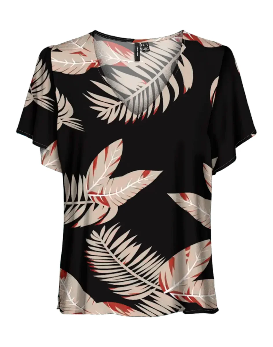Top con scollo a V e maniche corte ampie, dalla vestibilità regular fit che offre comfort e stile. Perfetto per un look casual, versatile e facile da abbinare.