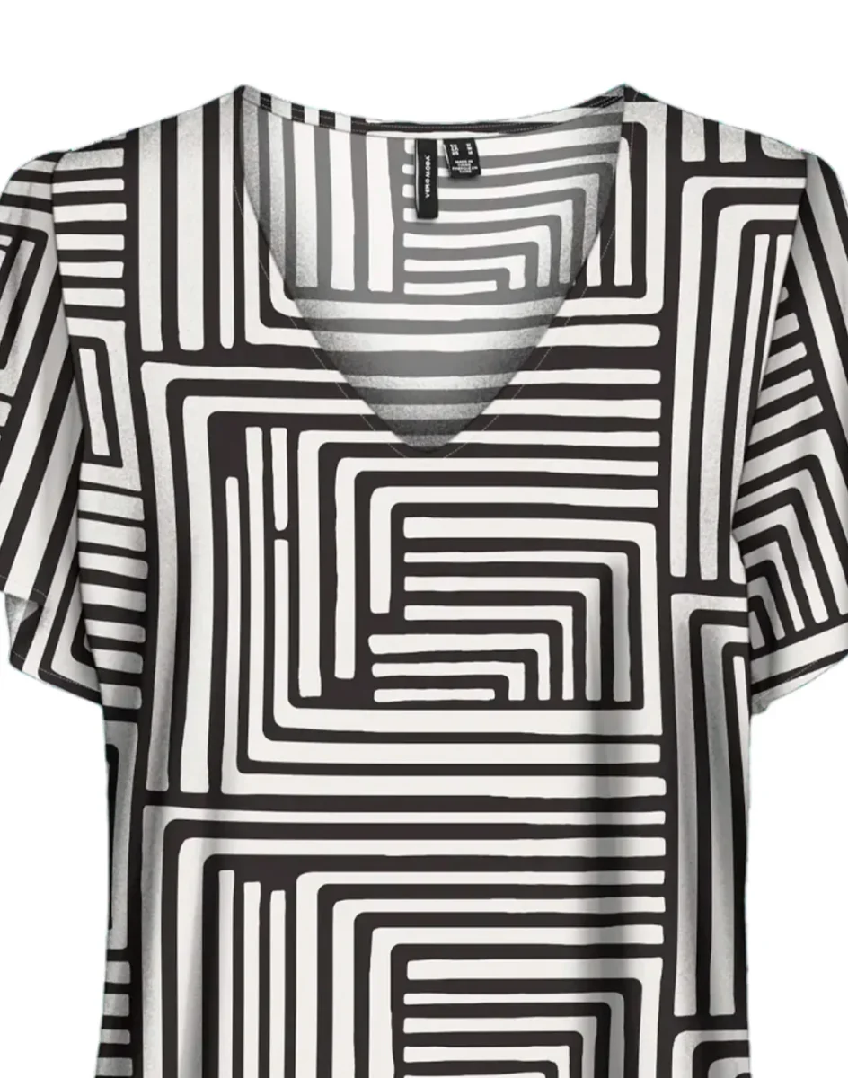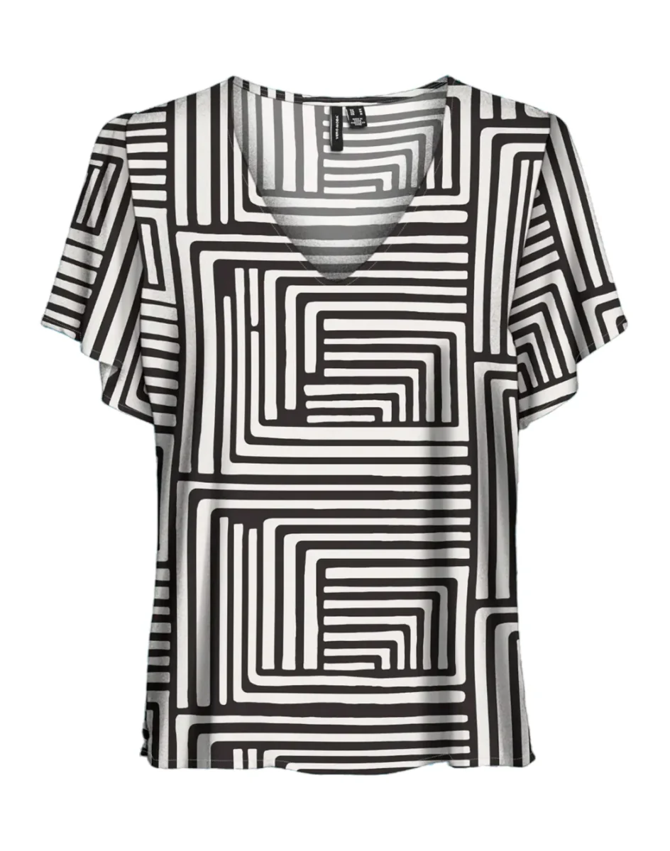 Top con scollo a V e maniche corte ampie, dalla vestibilità regular fit che assicura comfort e un tocco di stile. Ideale per un look casual e versatile, adatto a molteplici abbinamenti.