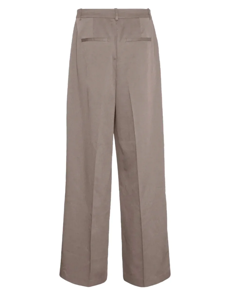 Pantaloni sartoriali a vita media con chiusura a gancio e zip, tasca frontale e passanti per cintura. La vestibilità wide leg fit offre un look elegante e comodo, perfetto per un outfit sofisticato.