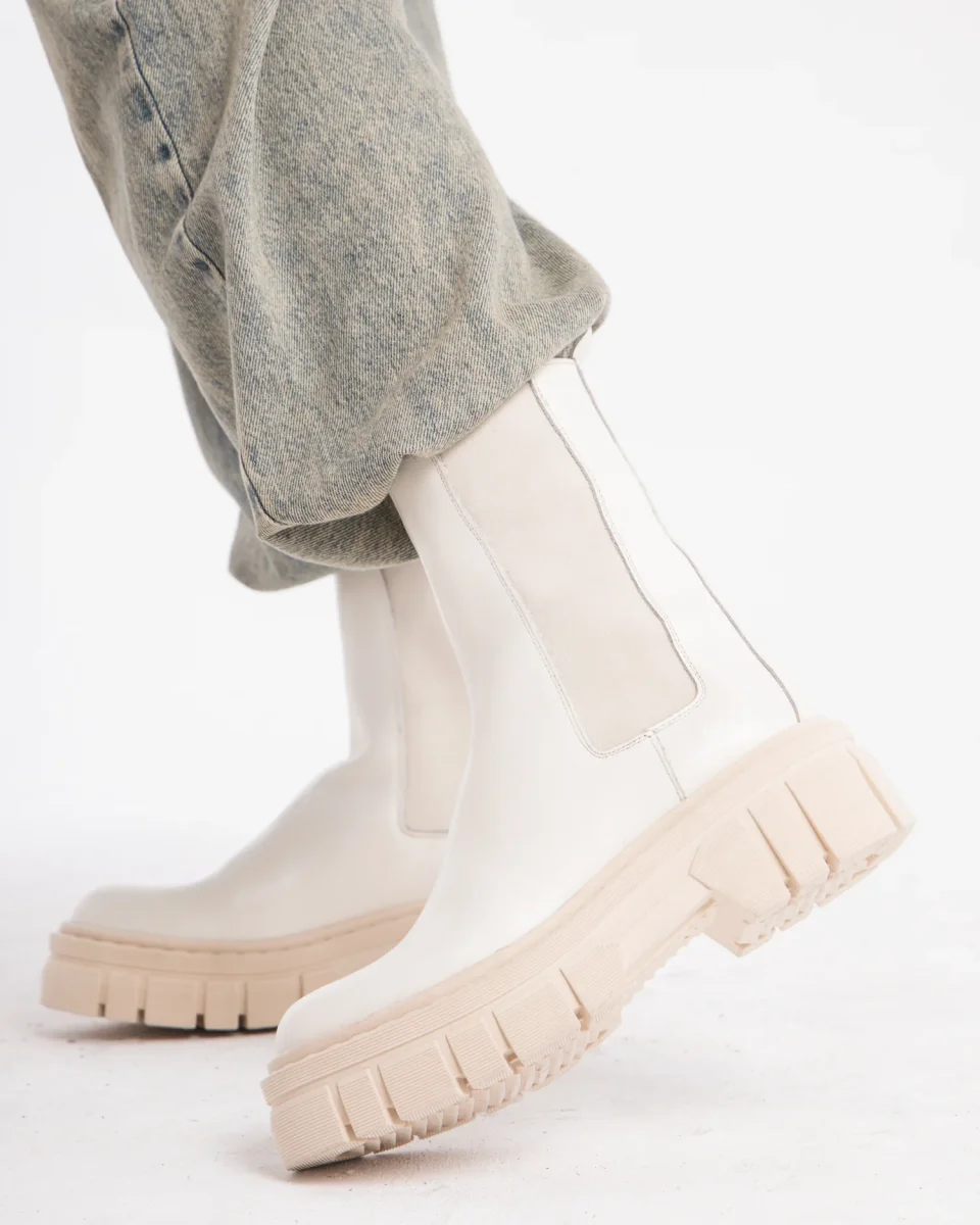 Xena – Tronchetto con elastico in pelle bianca