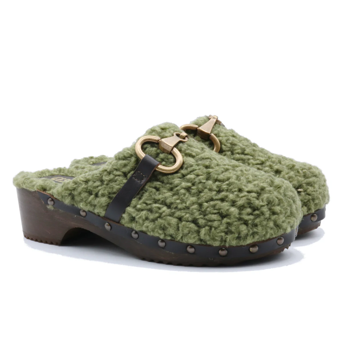 Zoccolo in camoscio con lana calda all’interno. Comodo e caldo per il tuo inverno. Tacco 3 cm.